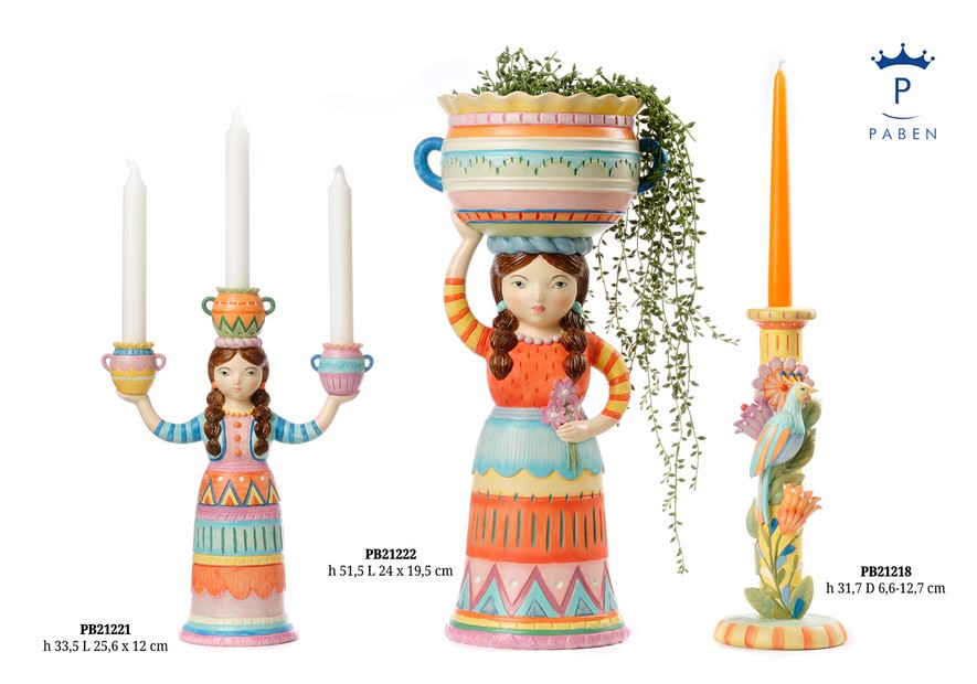CANDELABRO DONNA CON VASI 33.5 CM. RESINA