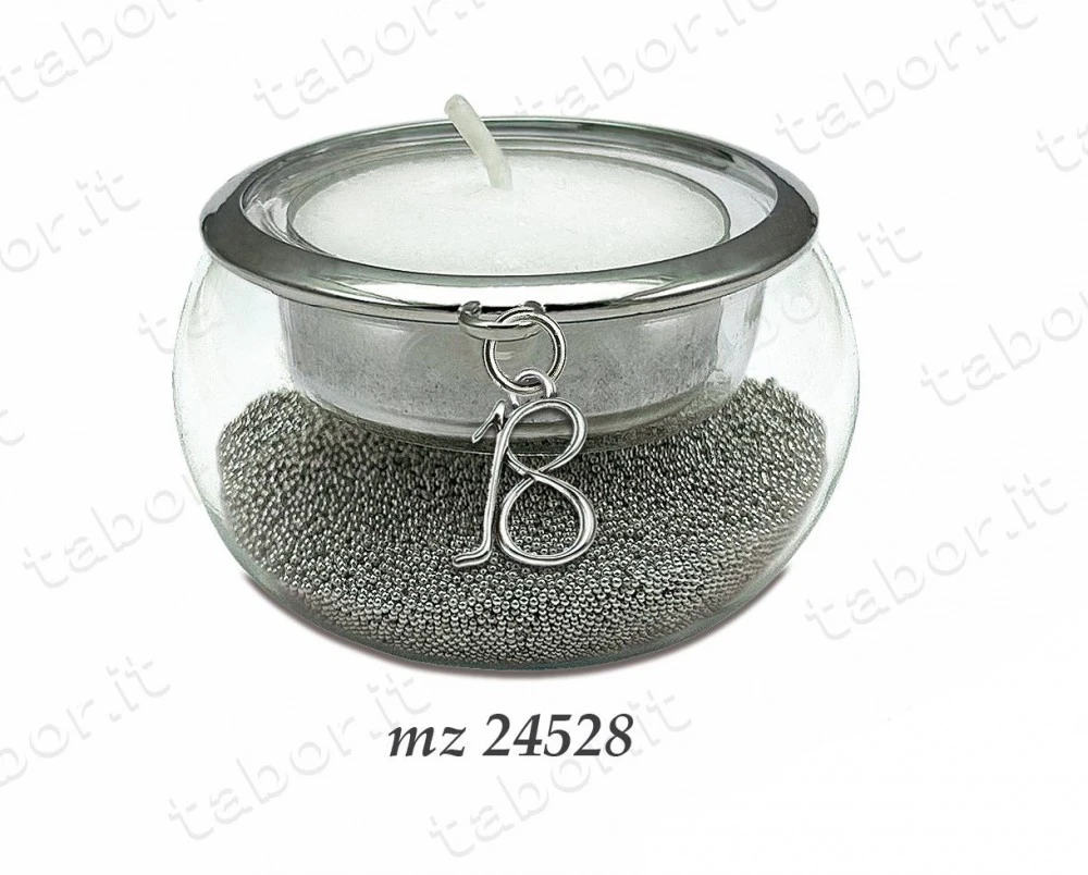 Bomboniera portacandela vetro con perline argento ciondolo 18