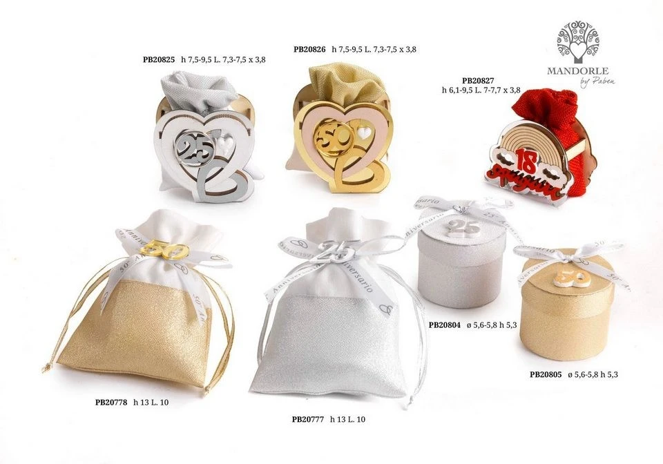 In questa sezione del sito troverai i nostri confetti dedicati al festeggiamento dell'anniversario dei 25 anni e dei 50 anni di matrimonio.