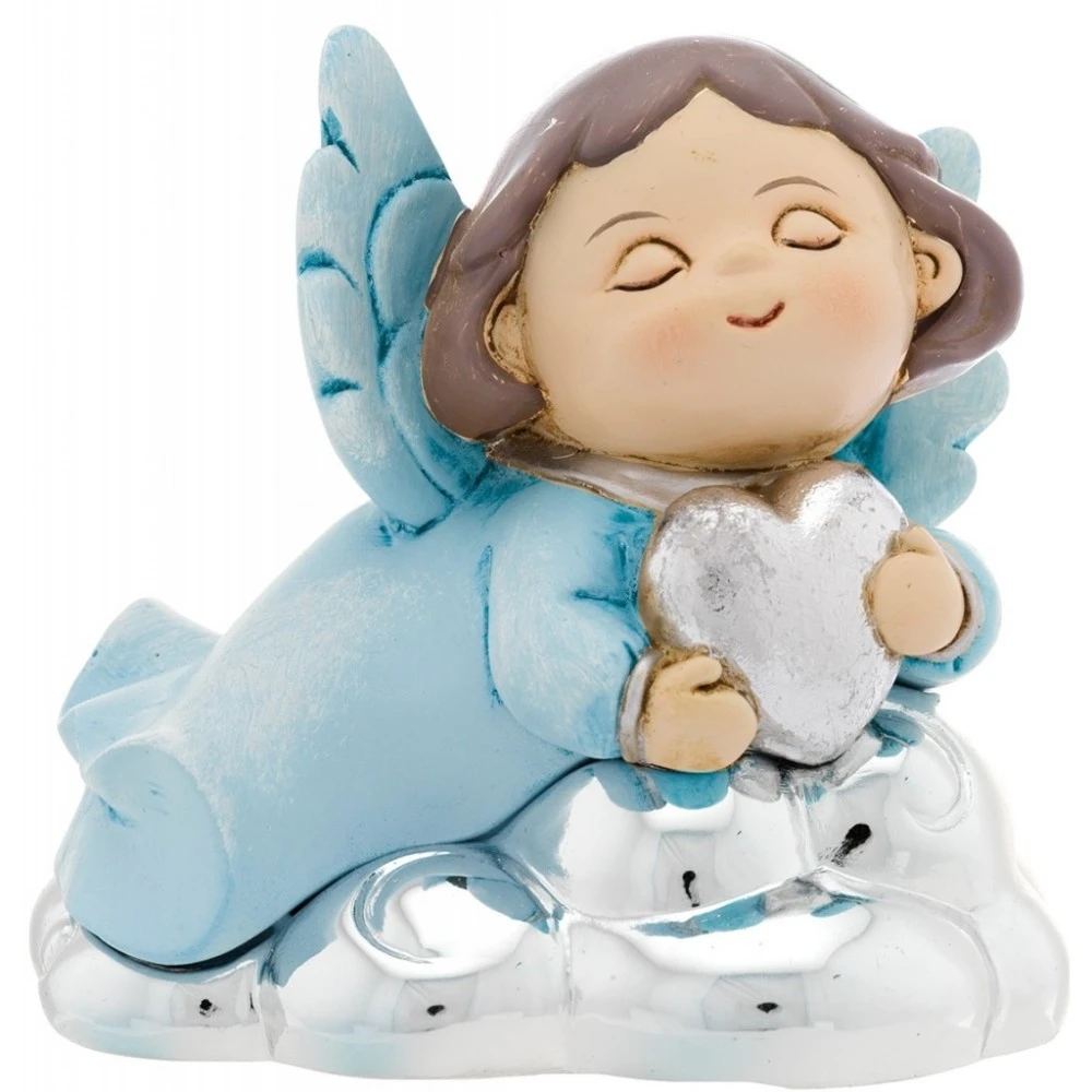 ANGIOLETTO AZZURRO SDRAIATO SU NUVOLA CON CUORE - GRANDE