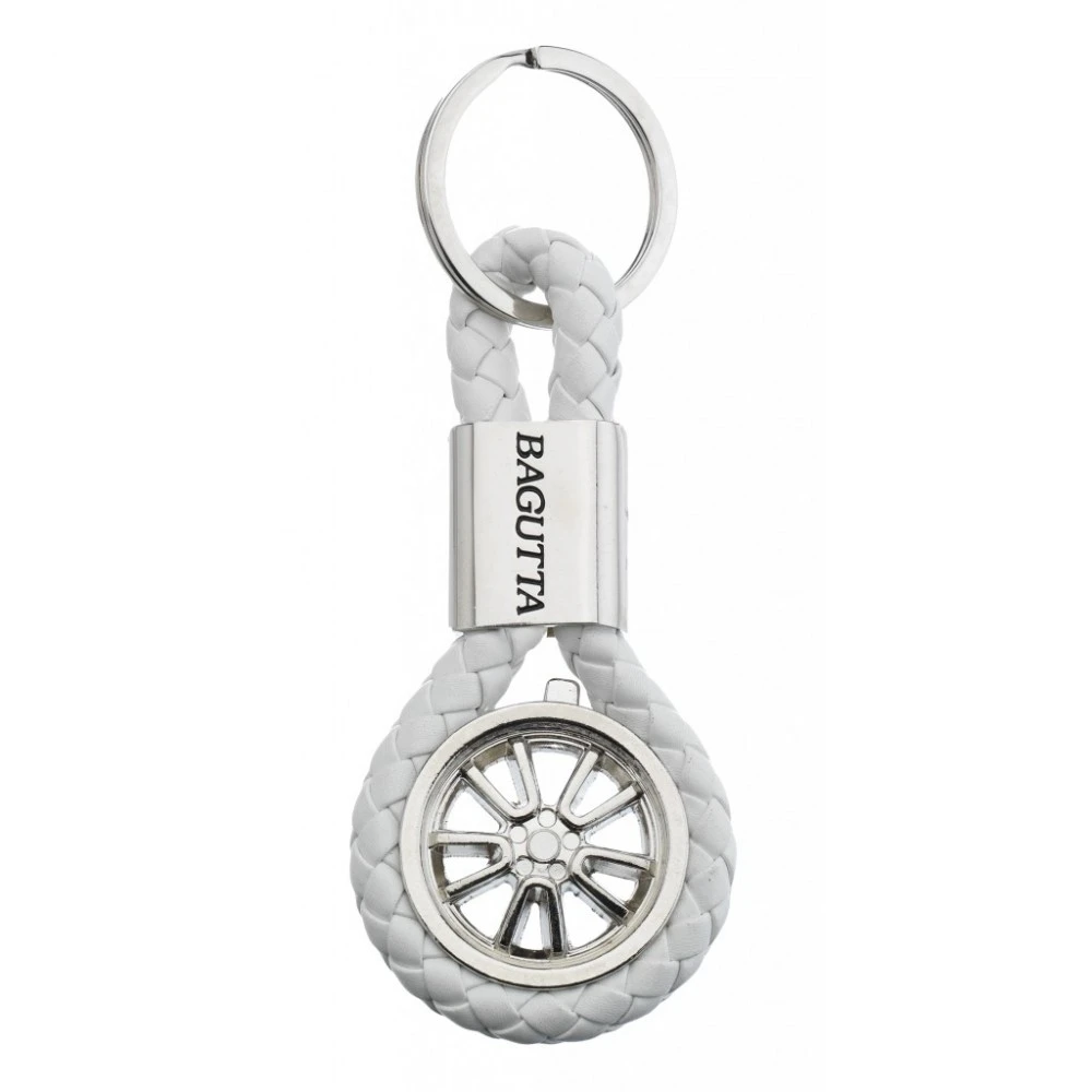 PORTACHIAVI CON RUOTA E CORDONE SIMILPELLE BIANCO cm 9,5