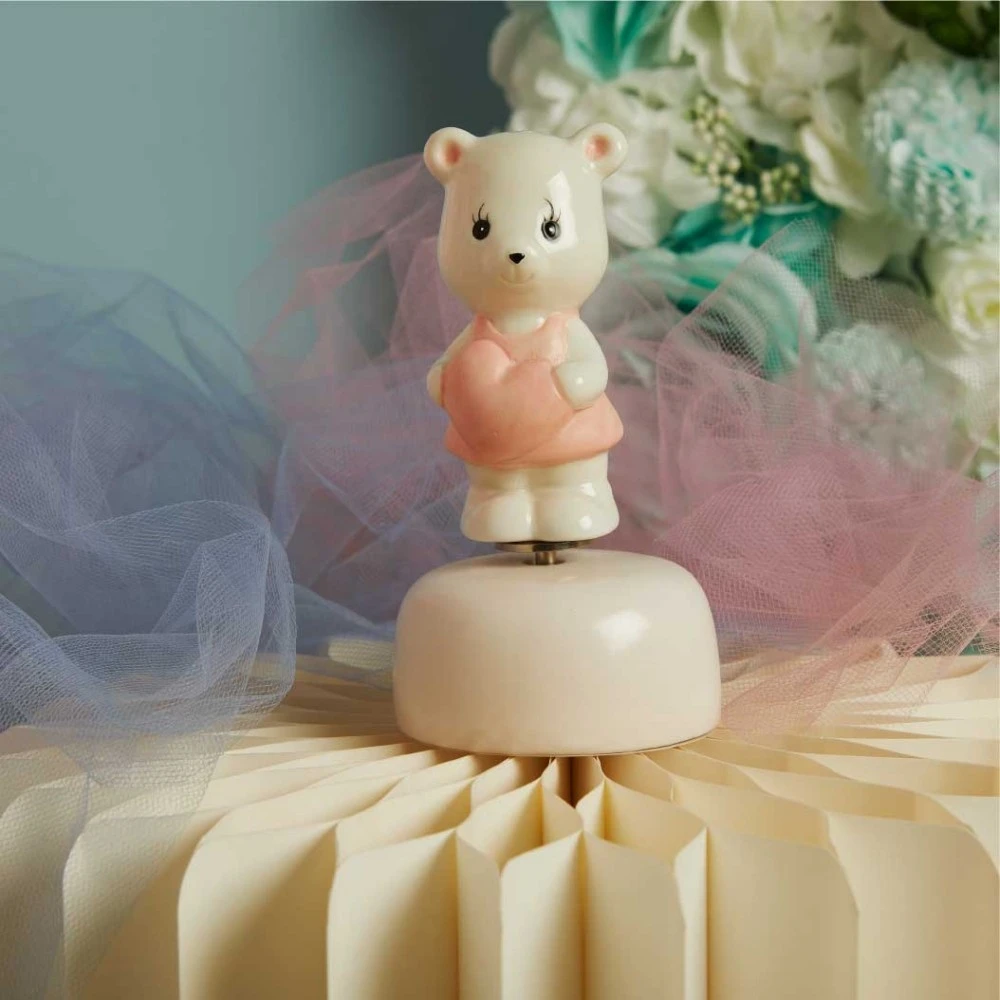 Carillon Claraluna Rosa: Orsetto con Cuore per un Battesimo da Favola cm. 7,5x14