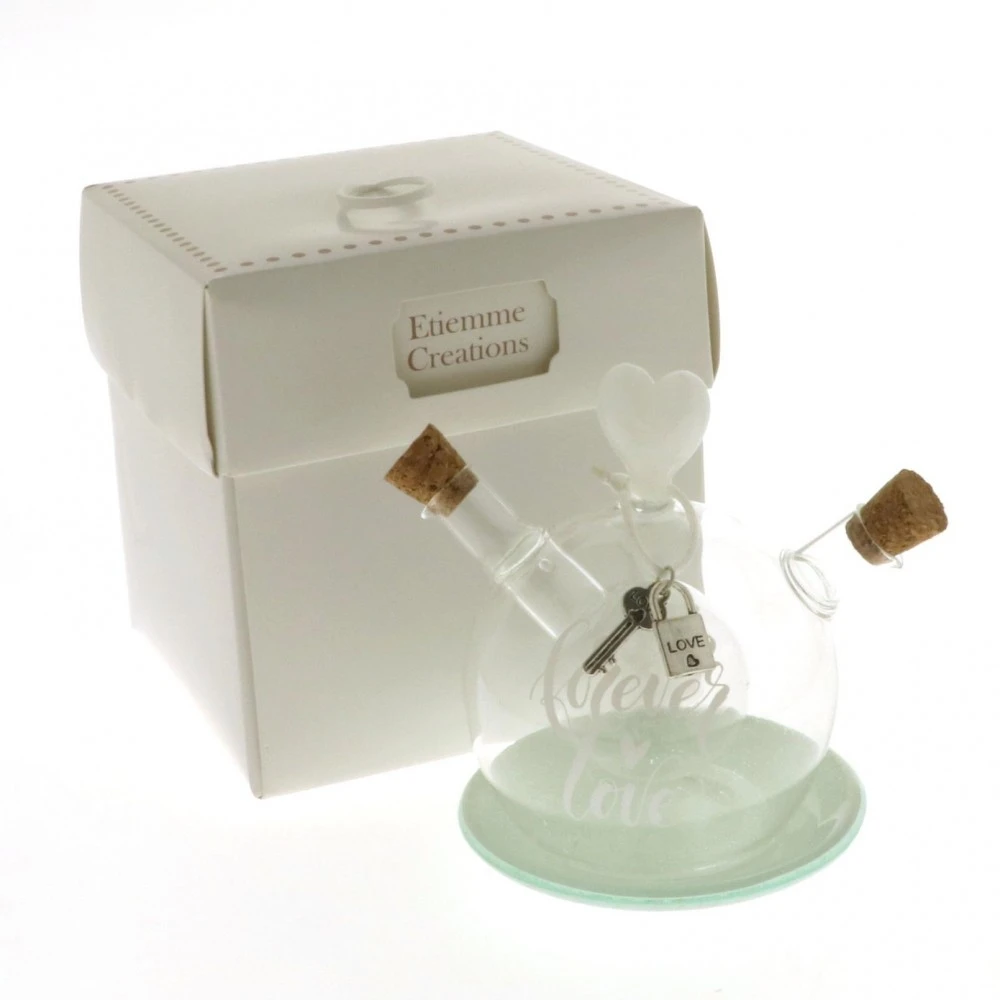 Bomboniera ampolla olio-aceto con applicazione chiave love.
