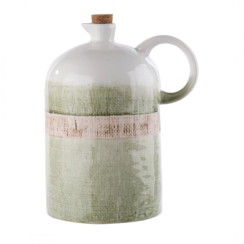 Ampolla grande in ceramica verde con tappo. Per donare un tocco di colore nello stile modern country alla tua cucina. Disponibile anche in formato più piccolo grande e in blu. Fa parte di una linea che include anche taglieri e barattoli.