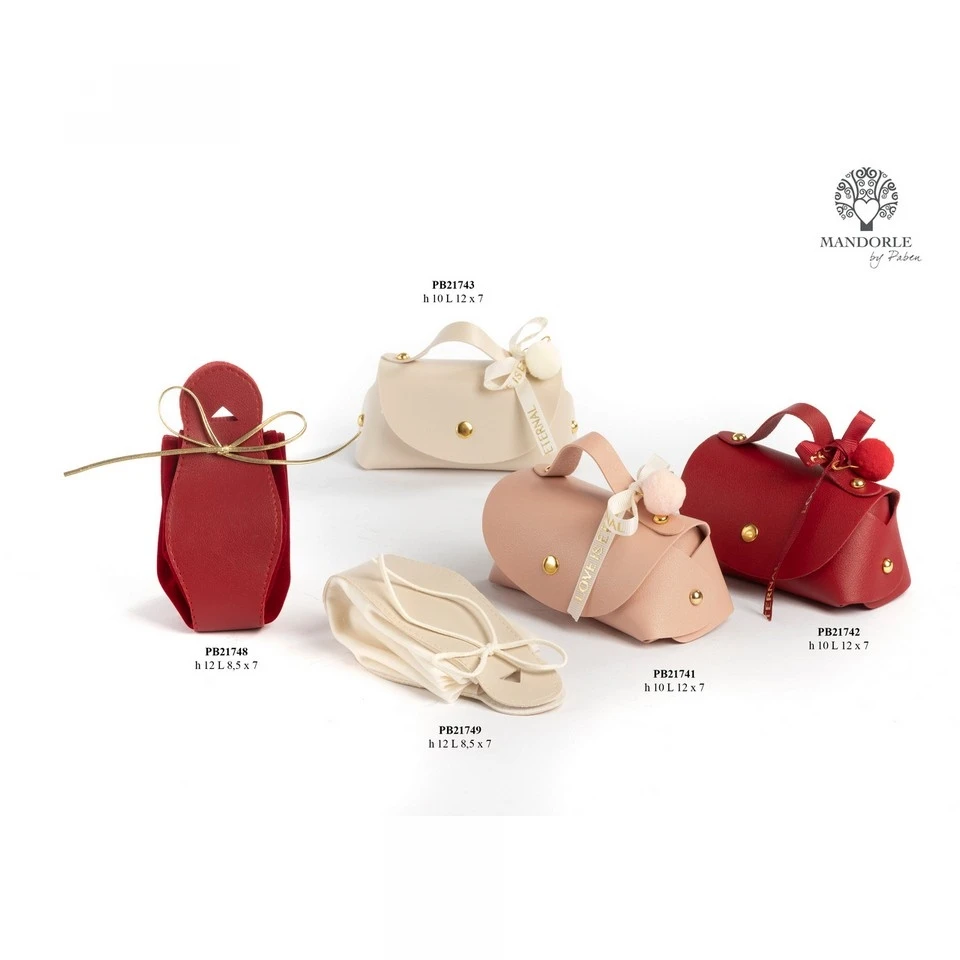PORTA CONFETTI BORSETTA IN SIMILPELLE PER MATRIMONI CON POMPON 10 CM.