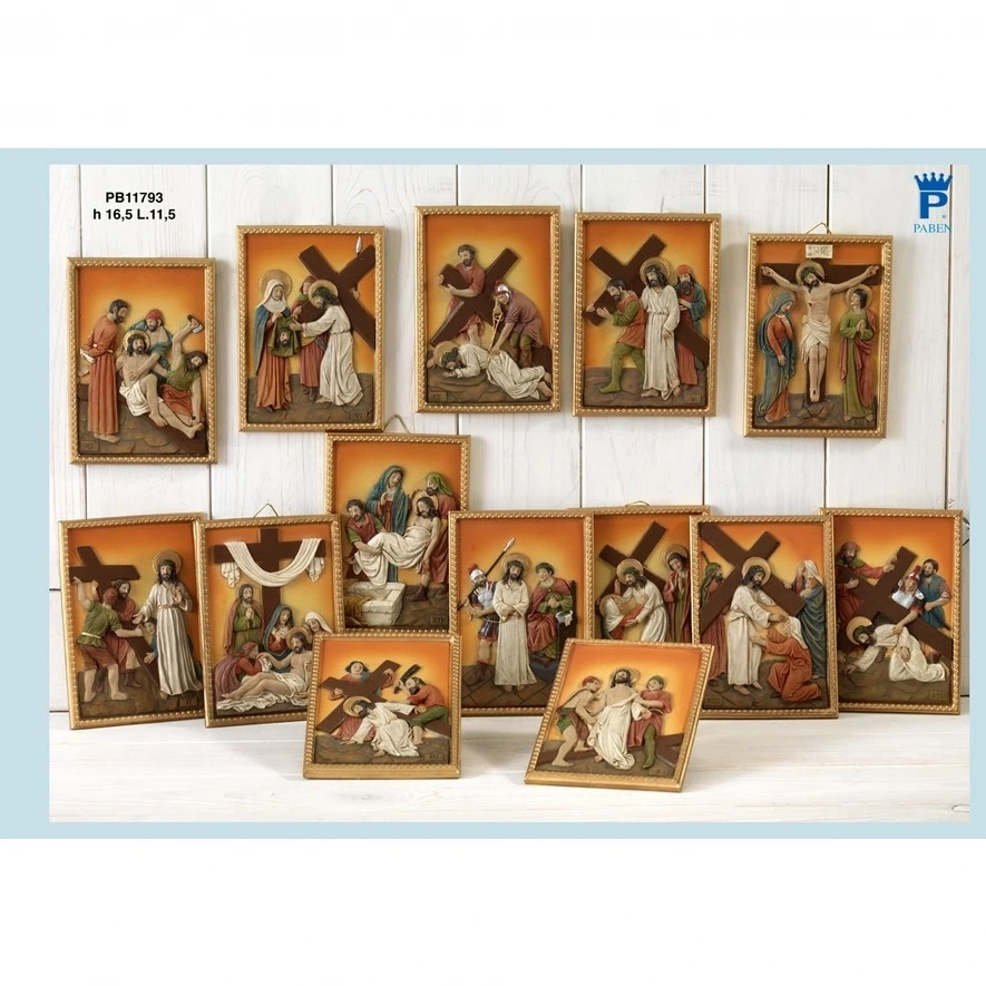 SET 14 QUADRETTI VIA CRUCIS 16.5 CM.