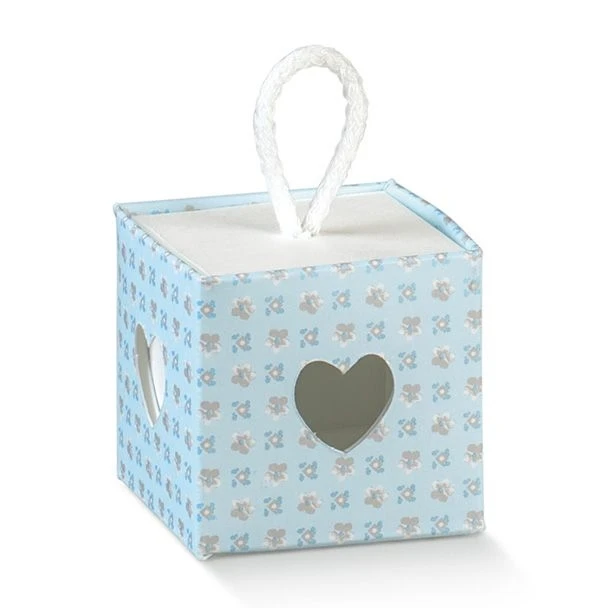 Casetta porta confetti in cartoncino a fantasia bianca e celeste