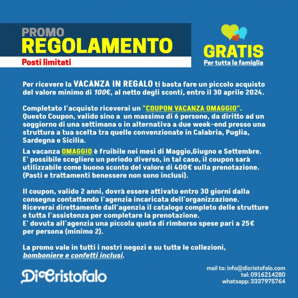 Completato l'acquisto riceverai un "COUPON VACANZA OMAGGIO".