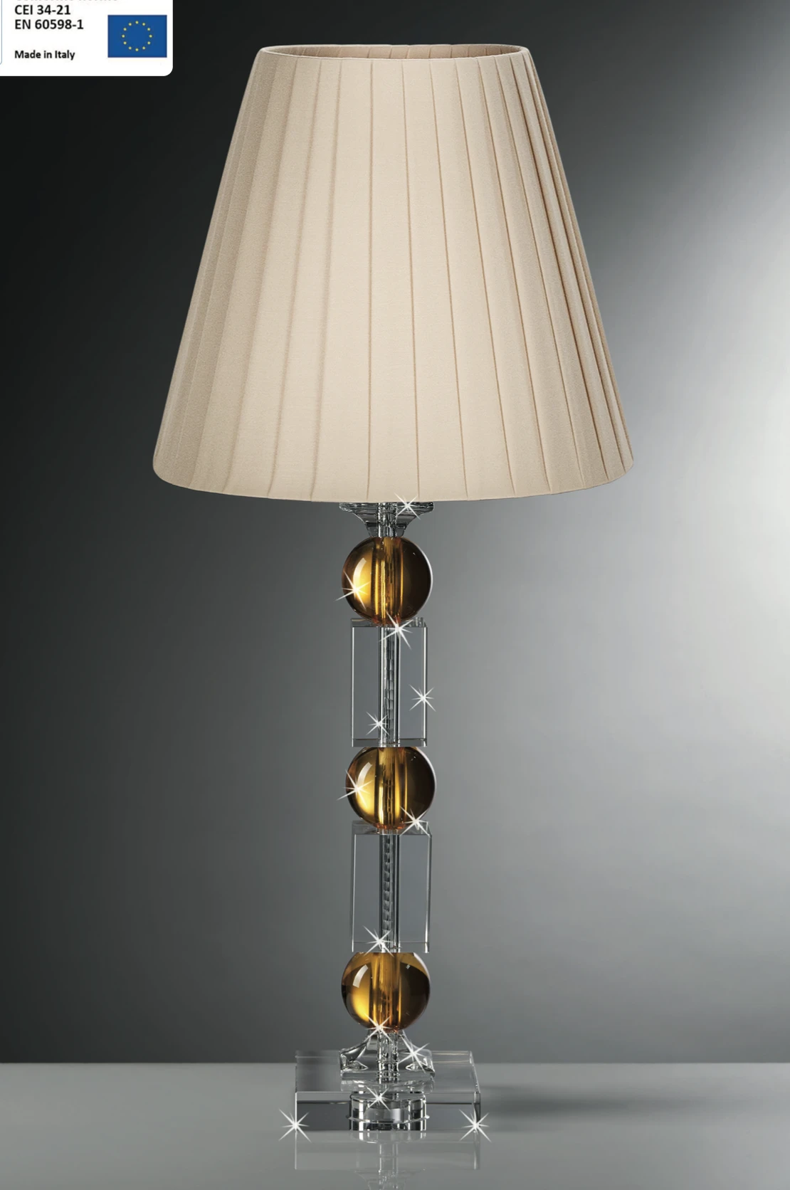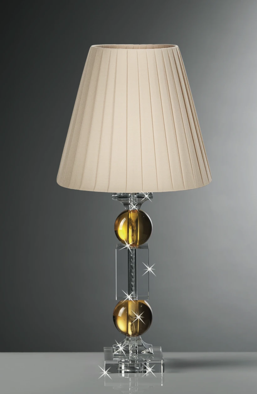 Lampada in Cristallo Ranoldi con Sfere Ambra e Paralume Avorio | Design Italiano.