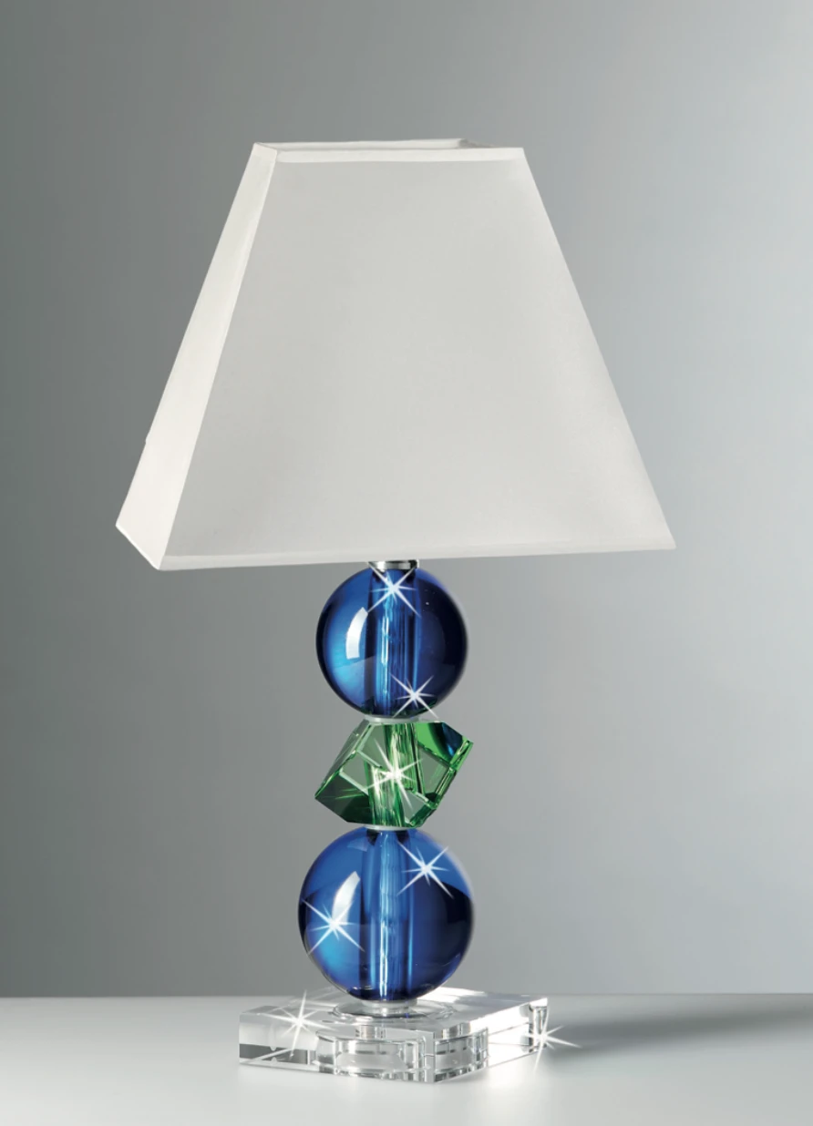 LAMPADA IN CRISTALLO CON ELEMENTI VERDI E BLU CM.42