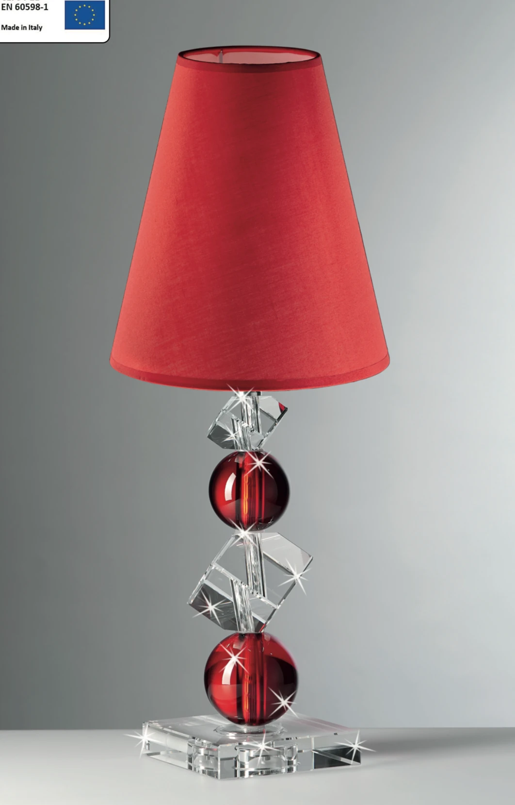 LAMPADA IN CRISTALLO CON ELEMENTI ROSSI CM.53