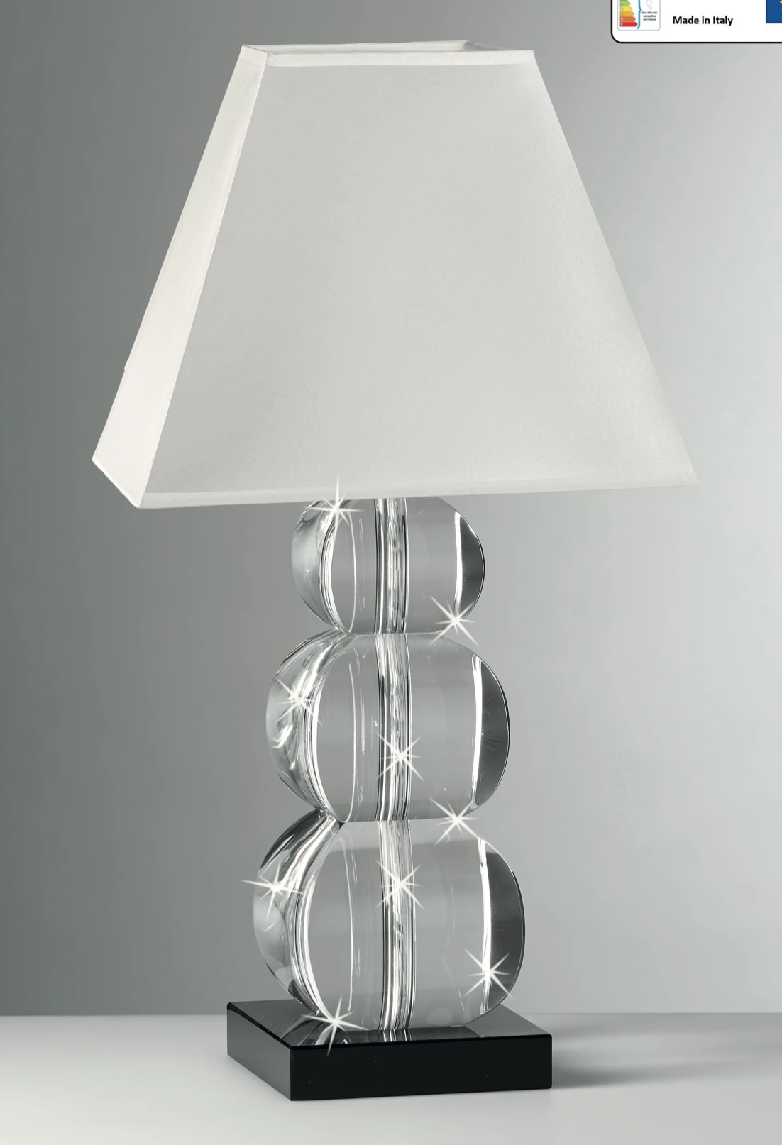 Lampada in Cristallo Ranoldi con Cubi a Rilievo e Base Nera | Design Italiano cm.