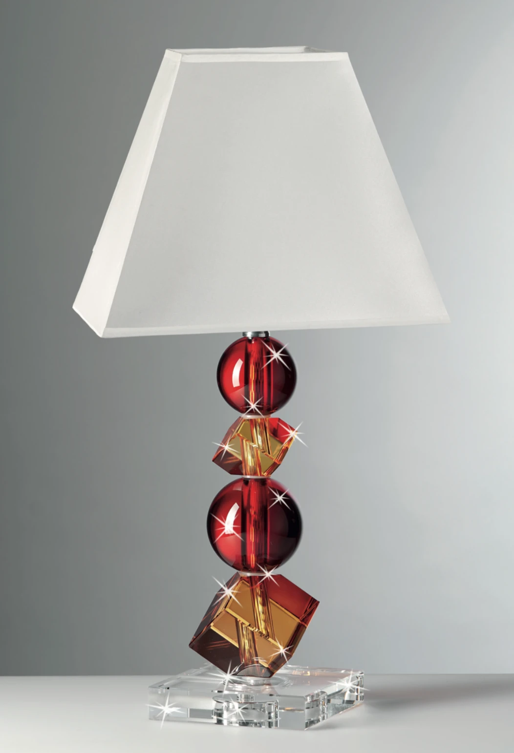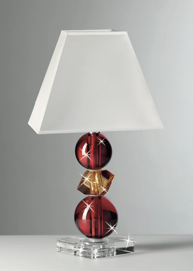 LAMPADA IN CRISTALLO CON ELEMENTI ROSSI E AMBRA cm.42