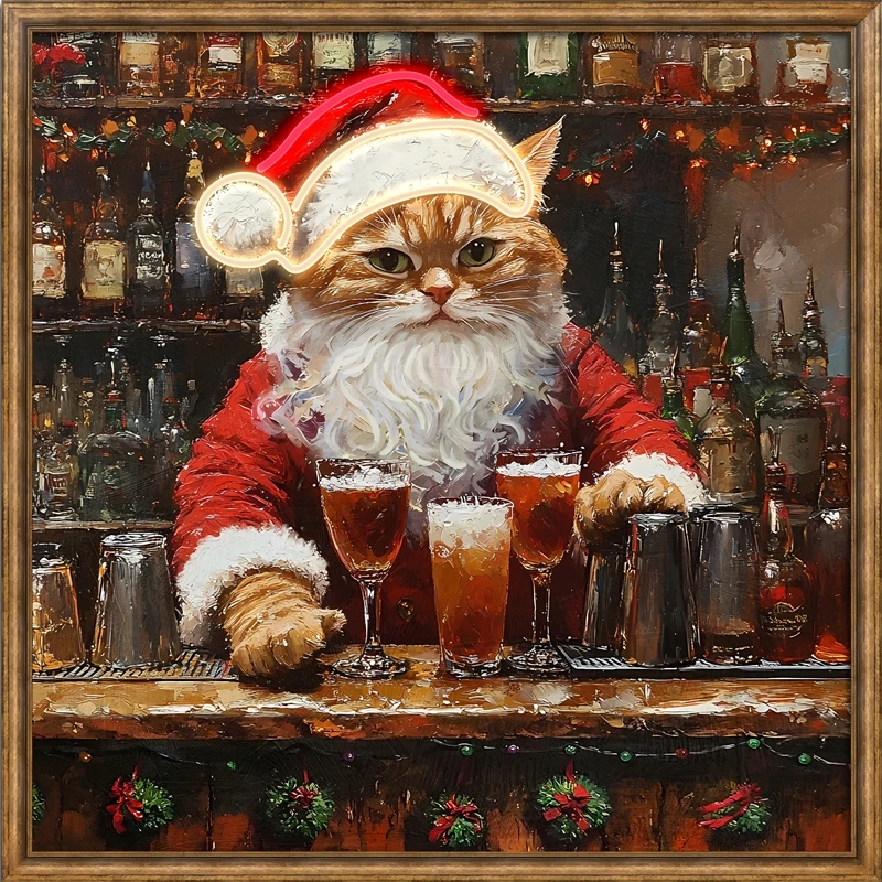 Quadro con casetta di montagna in paesaggio di natale innevato con luci led inte.