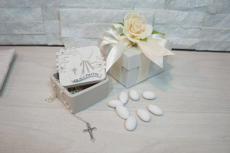 Scatolina cresima portaconfetti con rosario