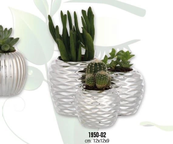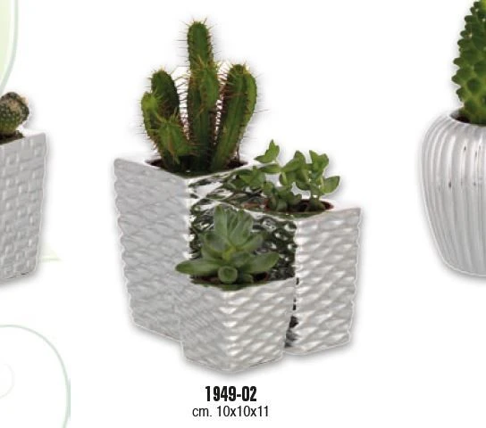 PORTAVASO TRITTICO BASE QUADRA CM. 10x10x11 FESONI CON PIANTINE GRASSE ASS.TE