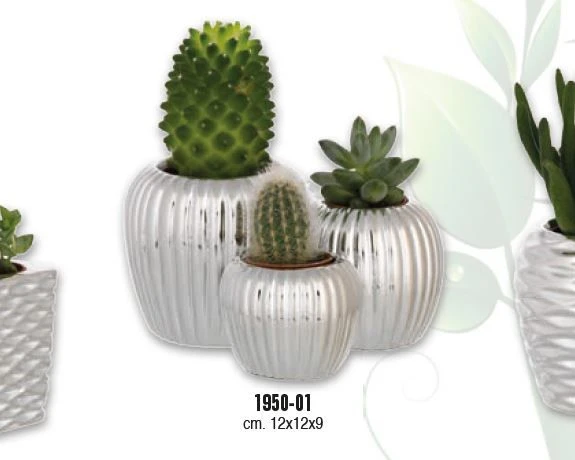 PORTAVASO TRITTICO BASE TONDA CM. 12x12x9 MILLERIGHE CON PIANTINE GRASSE ASS.TE