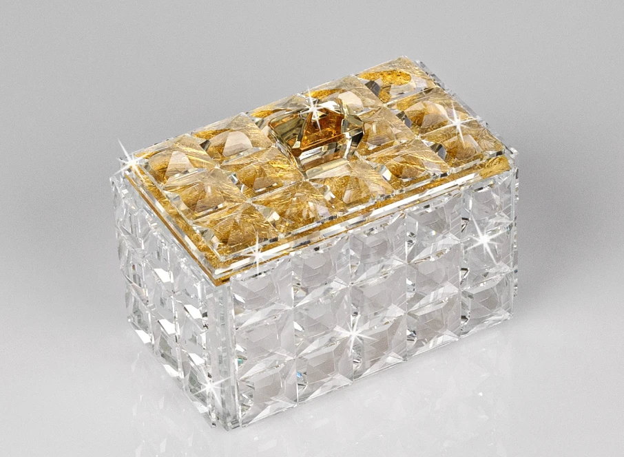 SCATOLA PORTAGIOIE IN CRISTALLO CM.22X18X10 ELEMENTI DORATI