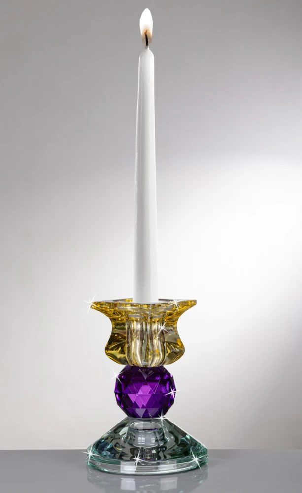 PORTACANDELA IN CRISTALLO AMBRA E VIOLETTO RANOLDI
