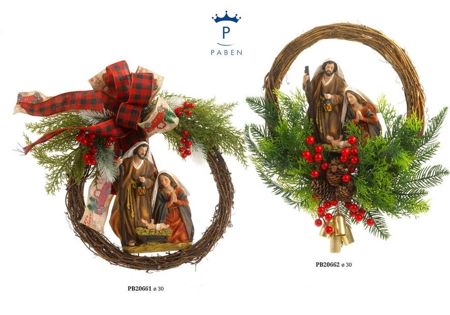 GHIRLANDA NATIVITA' CAMPANELLI 30 CM. RESINA STOFFA LEGNO