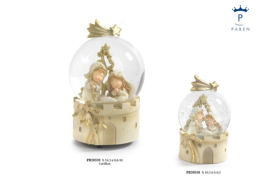 GLOBO GRUPPO NATIVITA' 16.3 CM. RESINA VETRO CARILLON