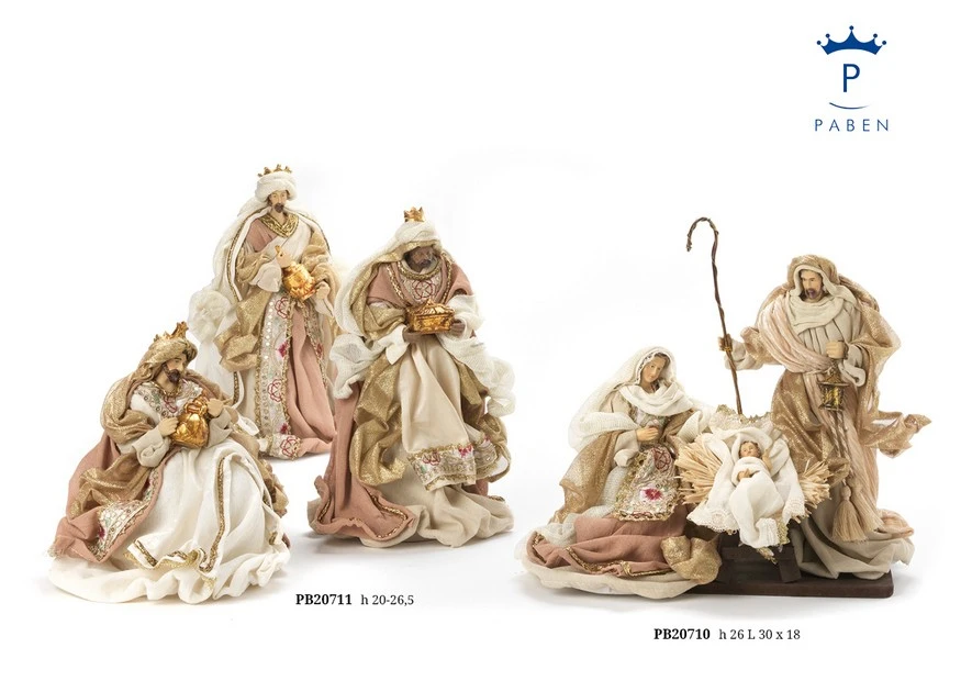 GRUPPO NATIVITA' 26 CM. RESINA STOFFA LEGNO