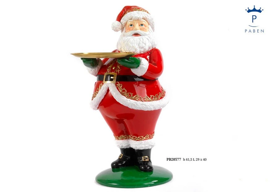 BABBO NATALE CON PIATTO 61.5 CM. RESINA METALLO