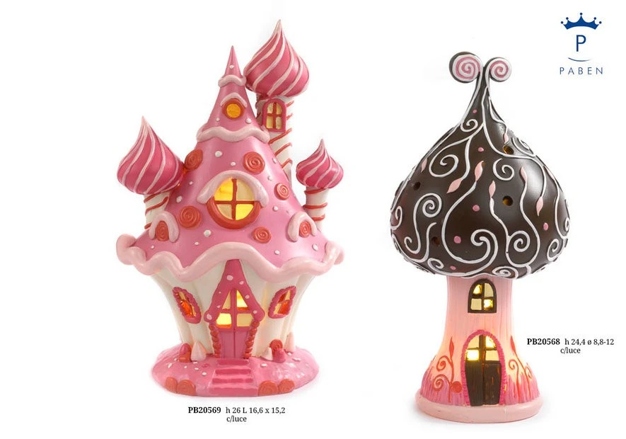 CASETTA A FUNGO DECORATO CON DOLCI 24.4 CM. RESINA LUCE