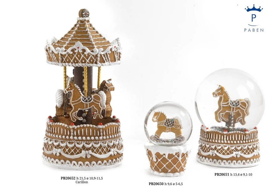 GLOBO CAVALLO A DONDOLO DI MARZAPANE 9.6 CM. RESINA VETRO