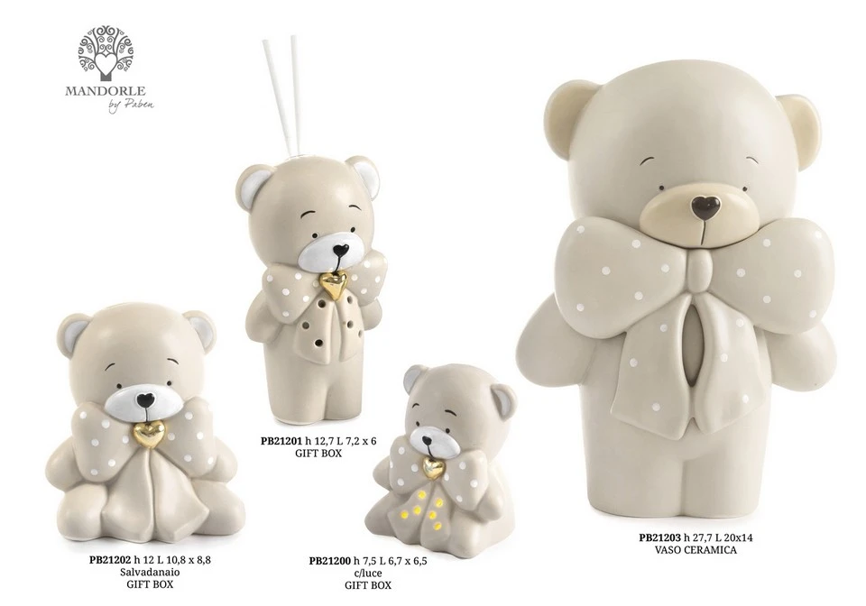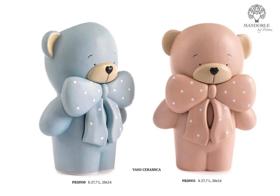 VASO ORSETTO CON FIOCCO AVANA 27.7 CM. PORCELLANA