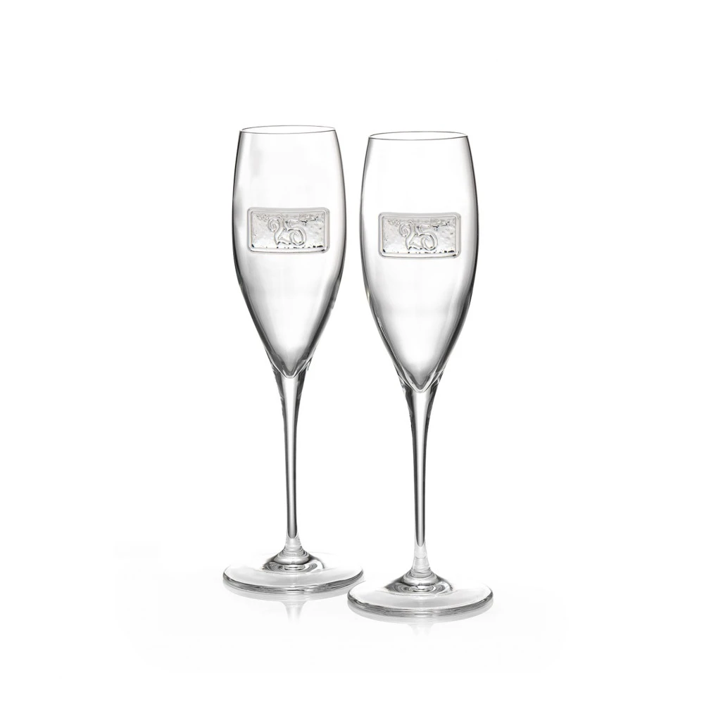 CONFEZIONE COPPIA FLUTE 25° NOZZE D'ARGENTO NASTRO