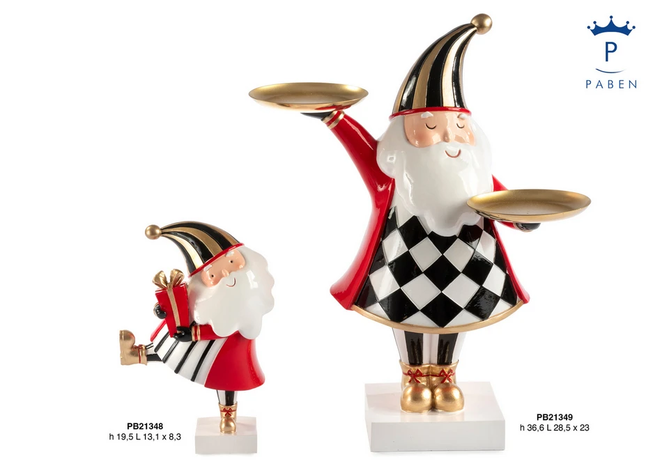 BABBO NATALE SPIRITOSO CON VASSOI 36.6 CM. RESINA METALLO