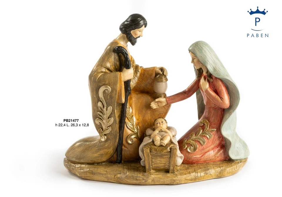 GRUPPO NATIVITA' 22.4 CM. RESINA EF. LEGNO
