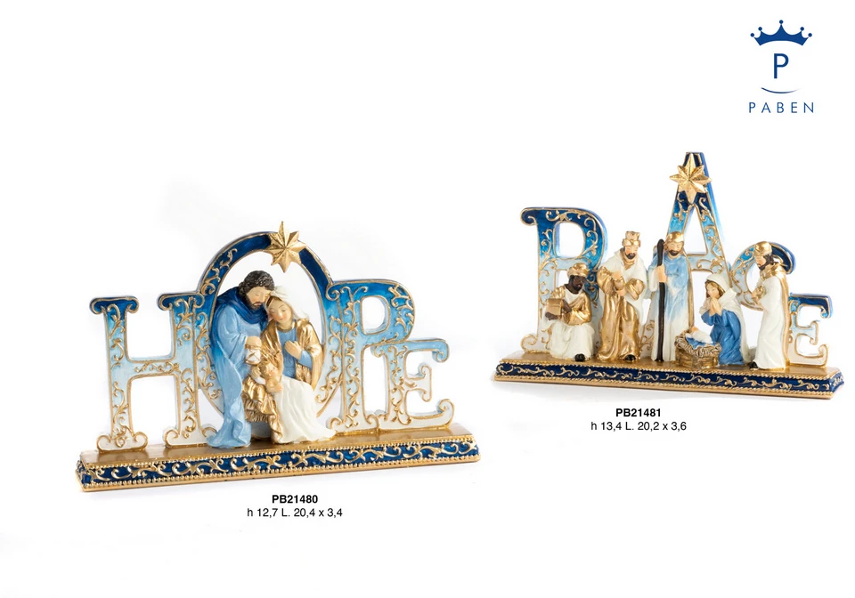 GRUPPO NATIVITA' CON SCRITTA HOPE 20.4 CM. RESINA
