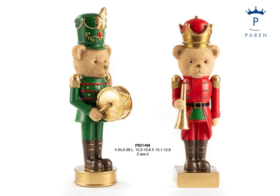 ORSETTO IN DIVISA CON STRUMENTO MUSICALE 36 CM. RESINA