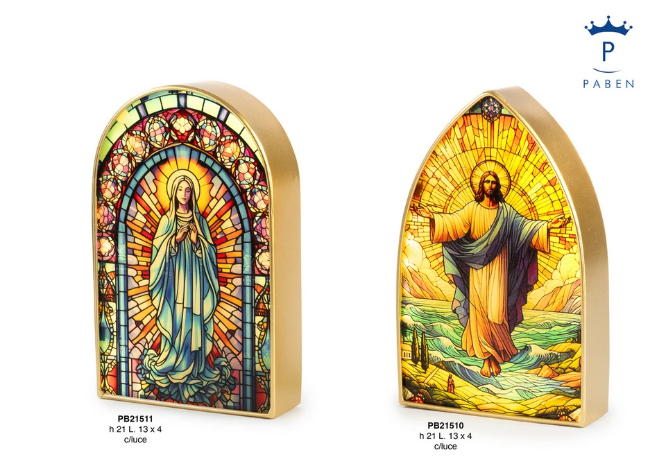 VETRATA GOTICA GESU' RISORTO 21 CM. PLASTICA METALLO