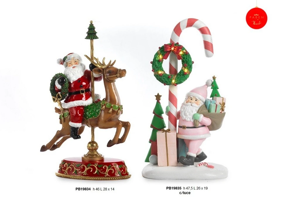 BABBO NATALE CON BASTONCINO DI ZUCCHERO 47.5 CM. RESINA LUCI