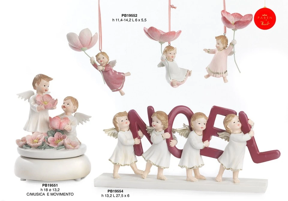 GRUPPO 4 ANGELI CON SCRITTA NOEL 13.2 CM. RESINA