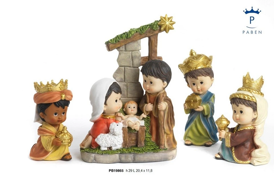 SET NATIVITA' CON CAPANNA E RE MAGI BAMBINI 29 CM. RESINA