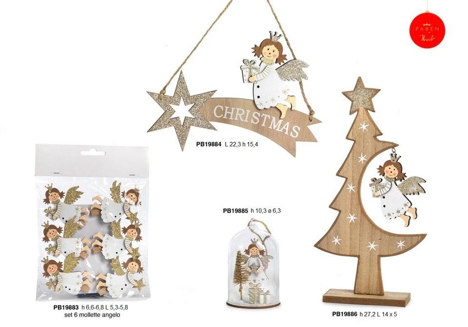 STELLA COMETA E ANGELO CON PACCO REGALO 22.3 CM. LEGNO AP