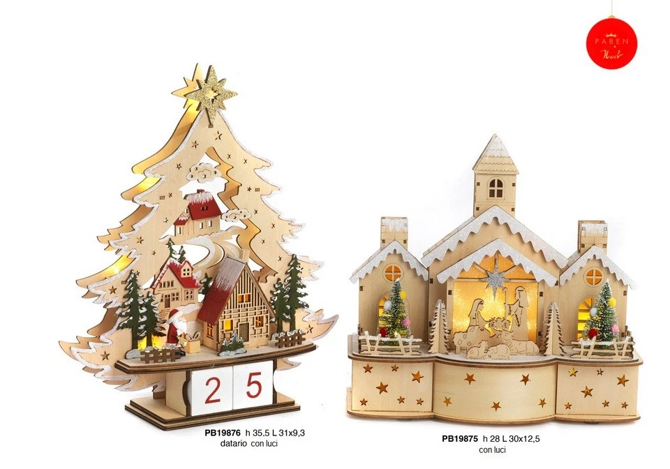 DATARIO ALBERO E SOG. NATALIZI 35.5 CM. LEGNO LUCE