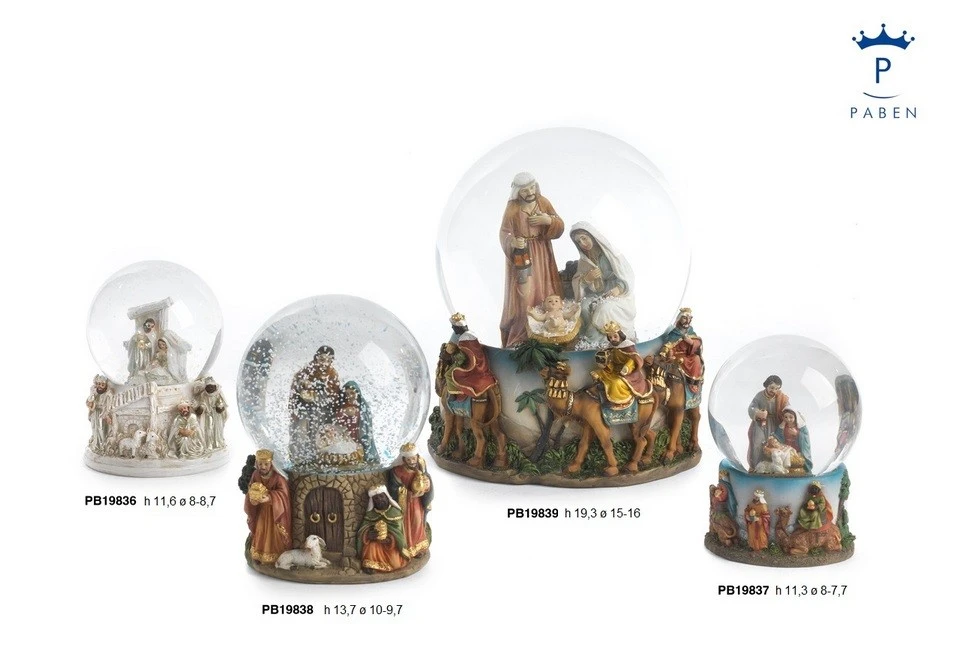 GLOBO GRUPPO NATIVITA' CON MAGI 11.3 CM. RESINA VETRO