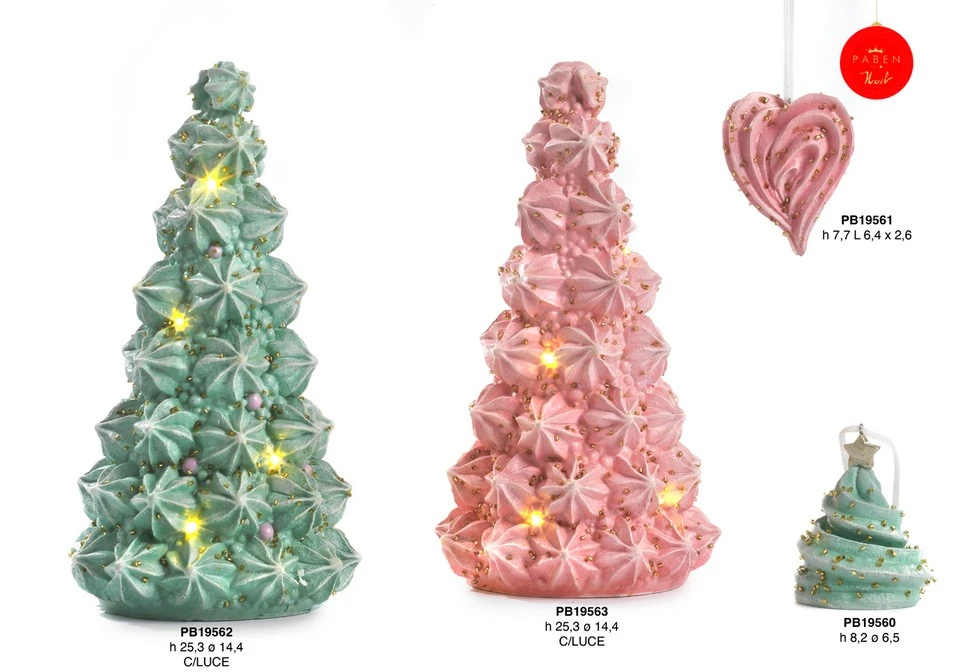 ALBERO NATALE DI MERINGHE ROSA 25.3 CM. RESINA LUCE