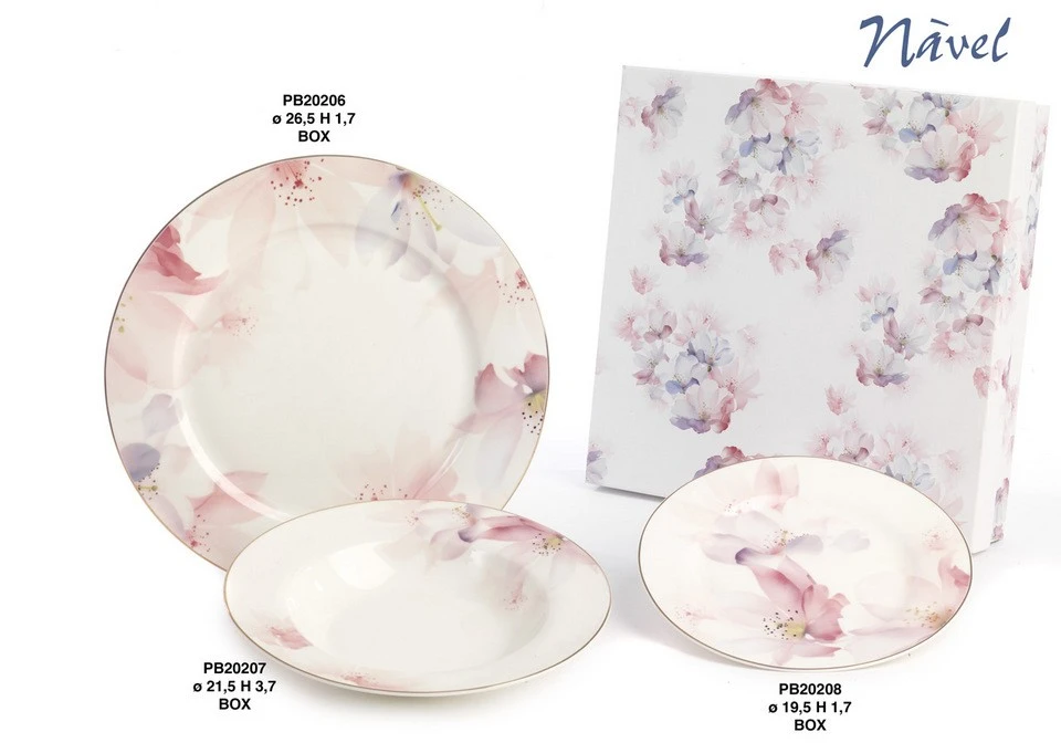 SET 6 PIATTI PIANI CON FIORI 26.5 CM. PORCELLANA