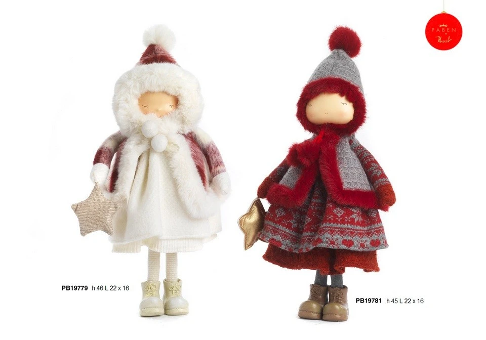 BIMBA SPIR. CON CAPPOTTO STOFFA 46 CM. RESINA STOFFA