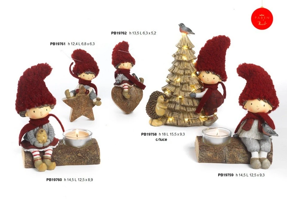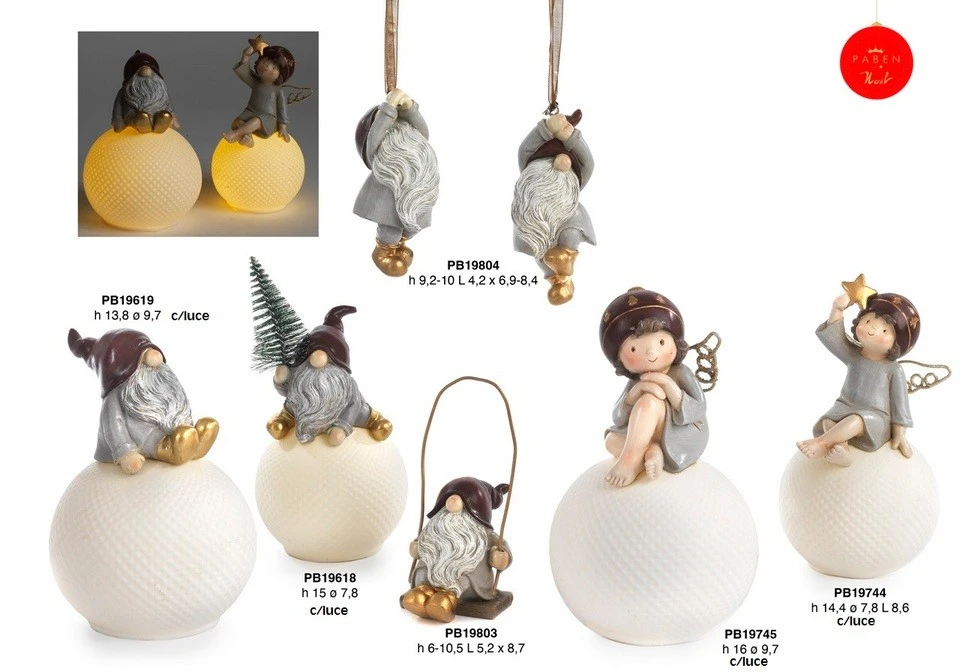 GNOMO ALBERO 13.8 CM. RESINA SU SFERA PORCELLANA LUCE