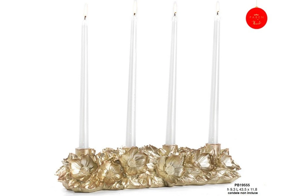 CENTROTAVOLA CON FIORI PORTACANDELE 43.5 CM. RESINA ORO