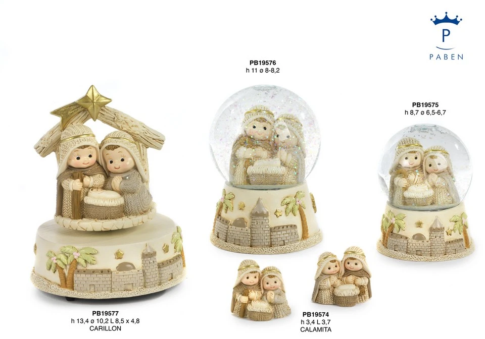 GLOBO CONT. GRUPPO NATIVITA' BAMB. 11 CM. 2 AS. RESINA VETRO