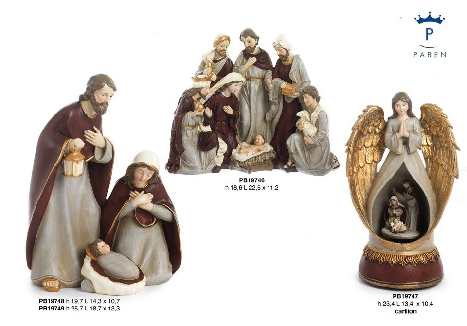 GRUPPO NATIVITA' DENTRO ANGELO 23.4 CM. RESINA CARILLON