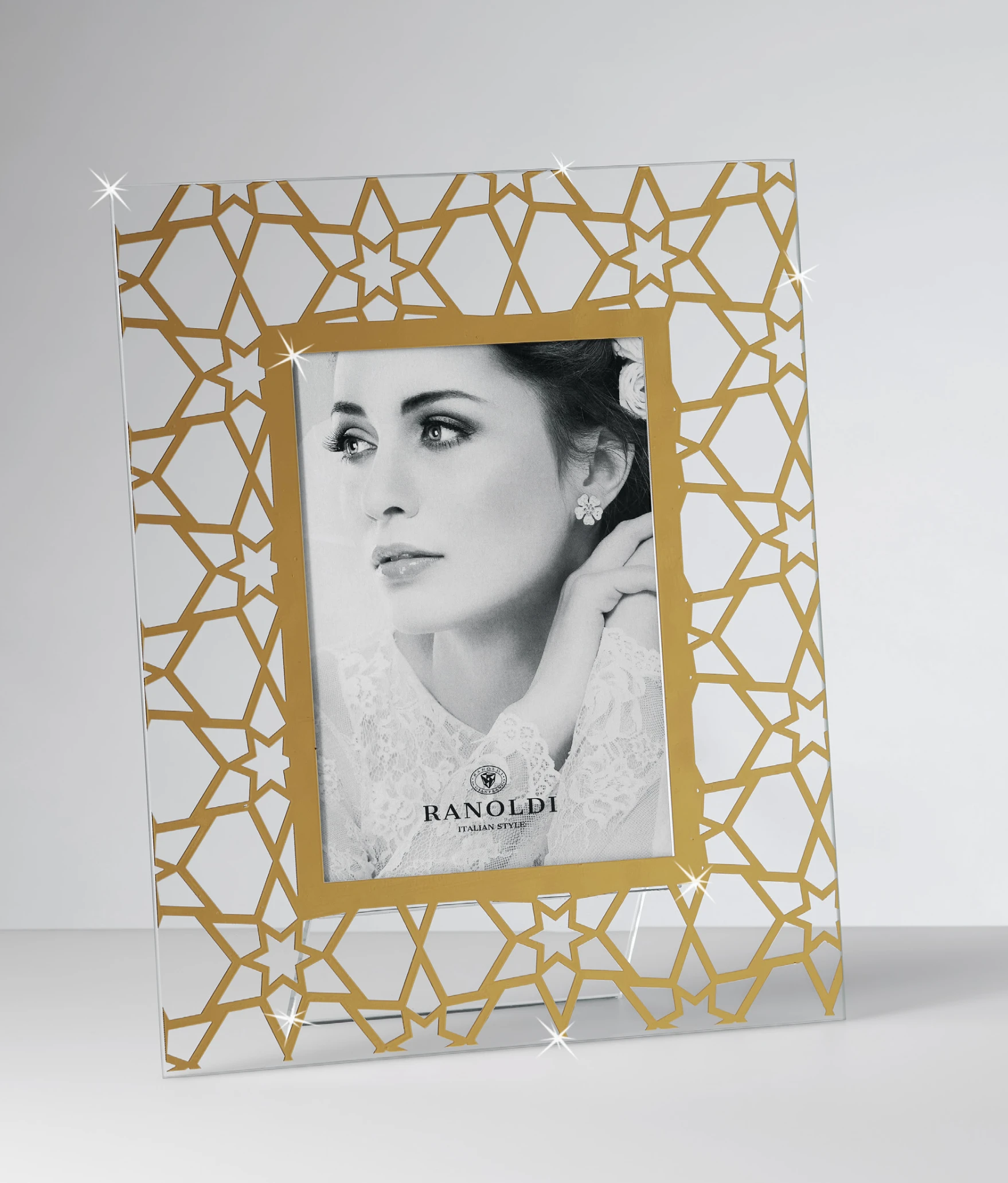 PORTAFOTO IN CRISTALLO SERIGRAFIA STELLE ORO cm.13X18 - RANOLDI